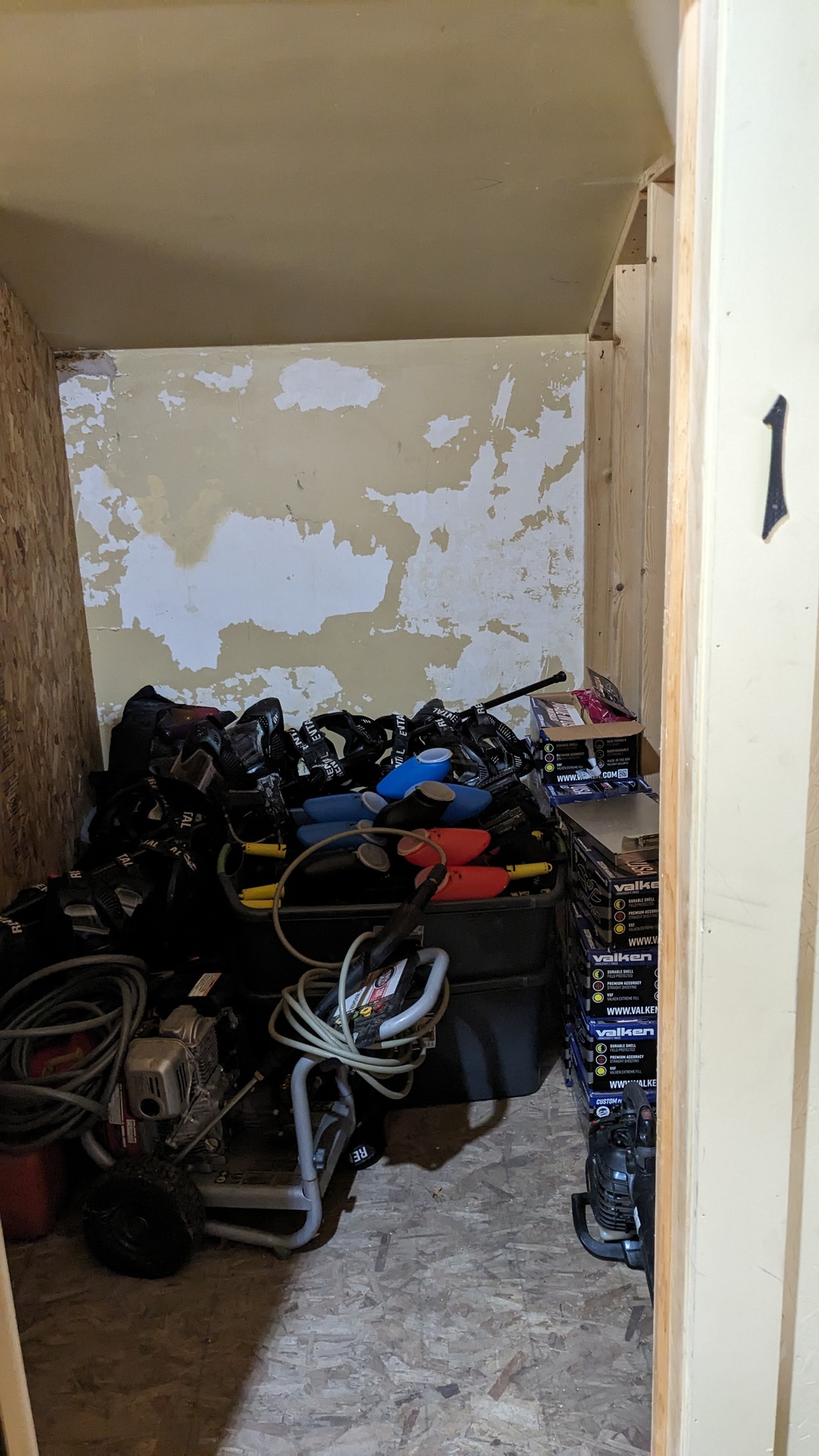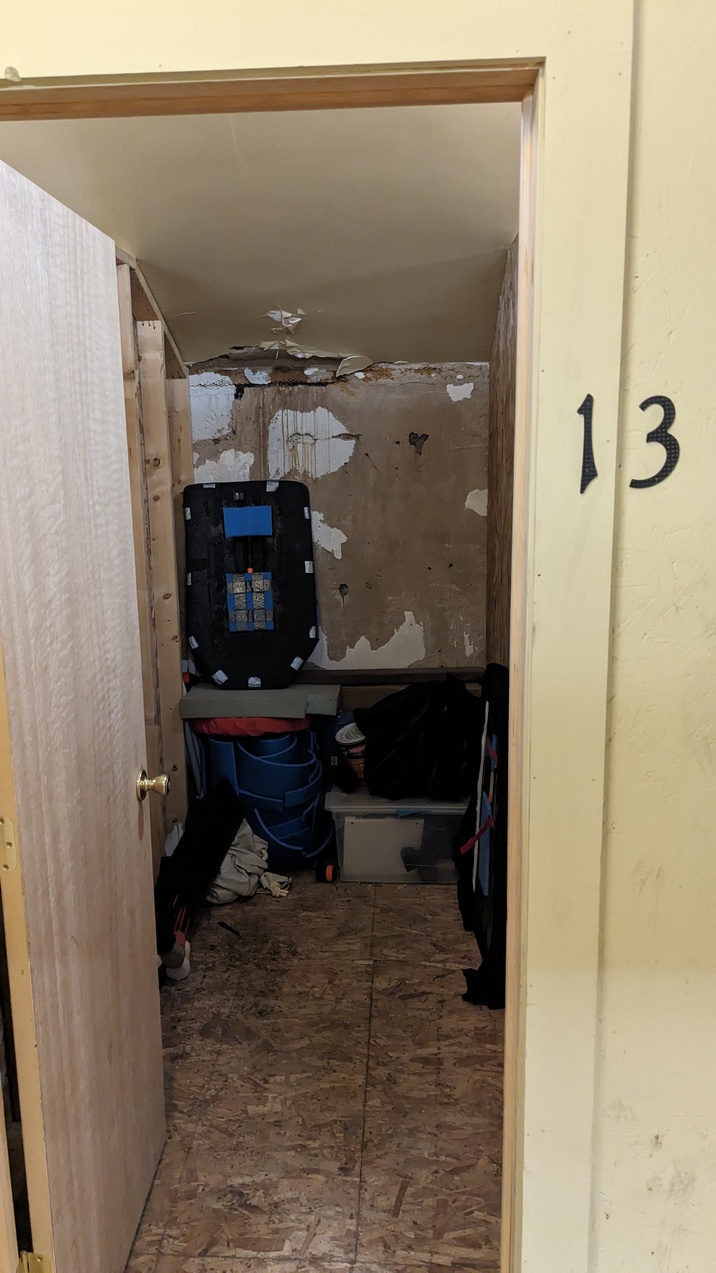 The Body Barn is overseen by the Events Committee of the Undergraduate Student Government. Each semester the lockers are checked to ensure safety and correct usage. There are several requirements and guidelines outlined in the Usage Contract. The largest requirement is an inventory of the locker including pictures. Some photographs of the interior of the barn are shown below.